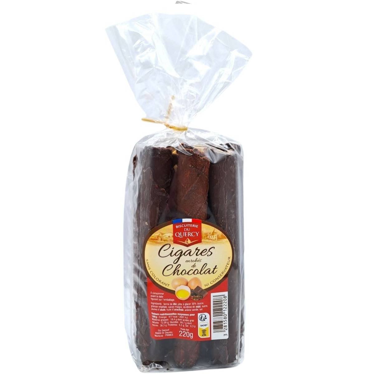 - Ingrédients : Farine de blé, sucre, pâte à glacer 30% (sucre, graisse végétale, cacao maigre, lécithine de soja), jaunes d’œufs, huile d’arachide, arôme vanille, sel.