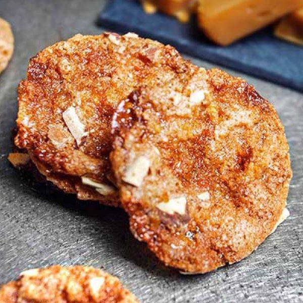 - Ingrédients : Sucre, farine de blé, blancs d’œufs, éclats de caramel au beurre salé 7.5% (sucre, sirop de glucose, lait entier en poudre reconstitué, crème fraîche d’Isigny AOP, beurre salé d’Isigny AOP 3.6%, sel de Guérande, émulsifiant : lécithines), amandes, fleur de sel de Guérande, dextrose.
