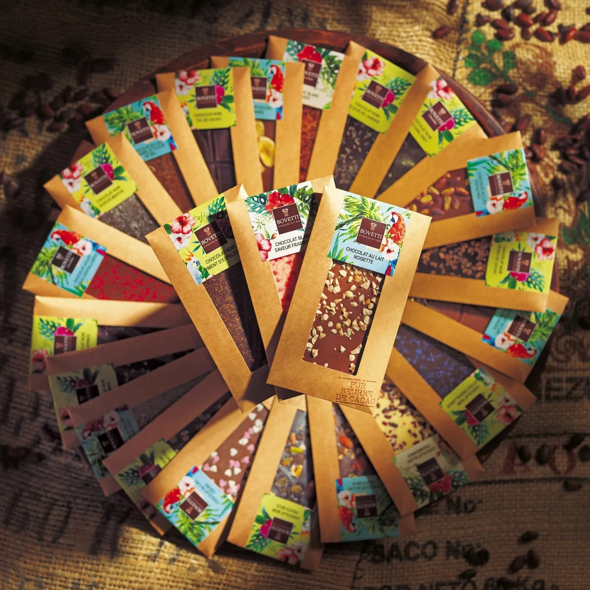 - Ingrédients : Chocolat noir* (masse de cacao* origine St Domingue, sucre de canne non-raffiné*, beurre de cacao*, poudre de cacao* origine St Domingue, poudre de vanille*). *issu de l’agriculture biologique Cacao, sucre, vanille : cultivés et commercialisés conformément aux standards du commerce équitable Fairtrade. 100% du poids total. Cacao, sucre : le bilan de masse est utilisé pour correspondre au volume acheté aux conditions Fairtrade. www.maxhavelaarfrance.org
